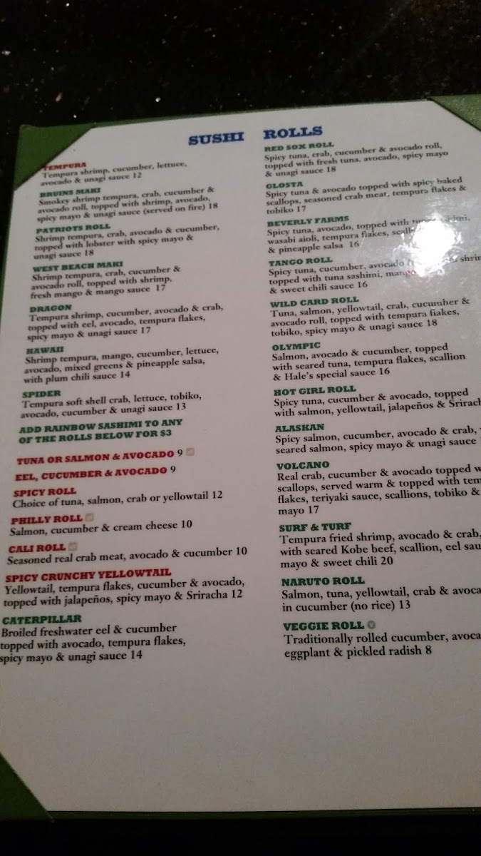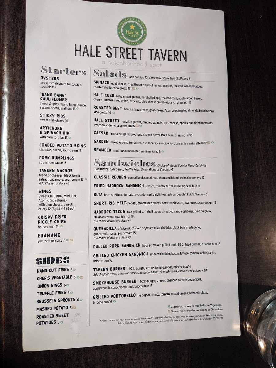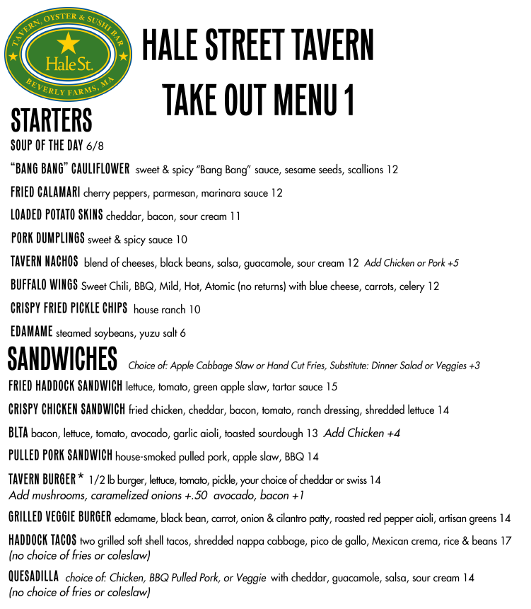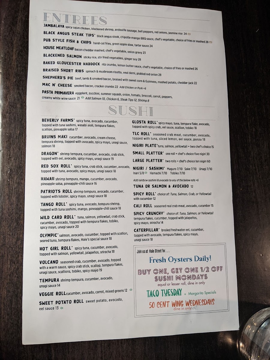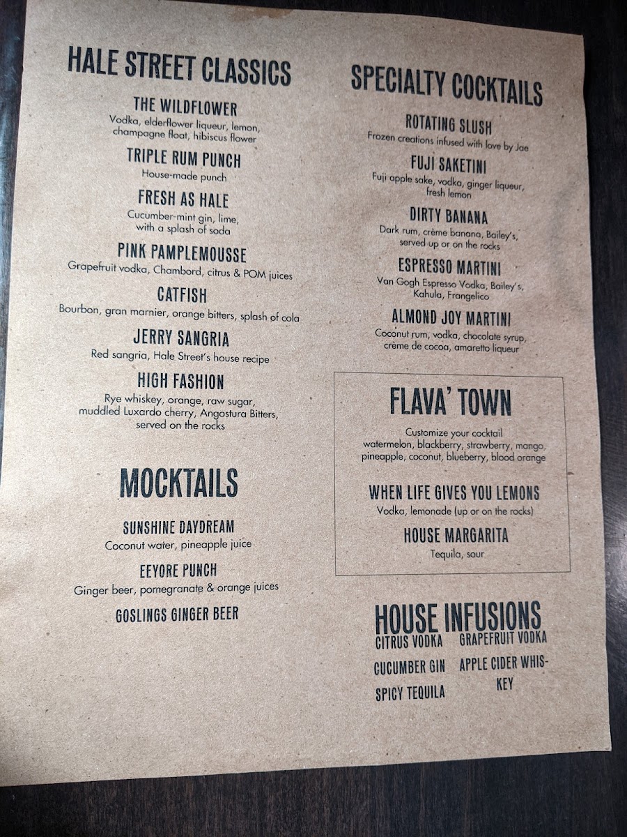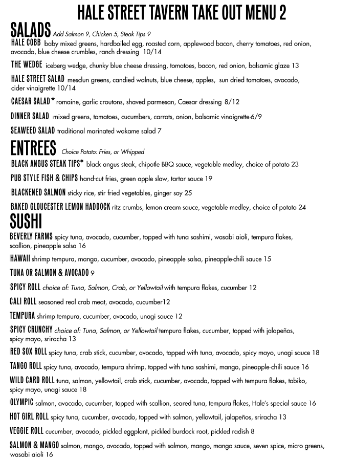 Hale Street Menu (2025 Update)